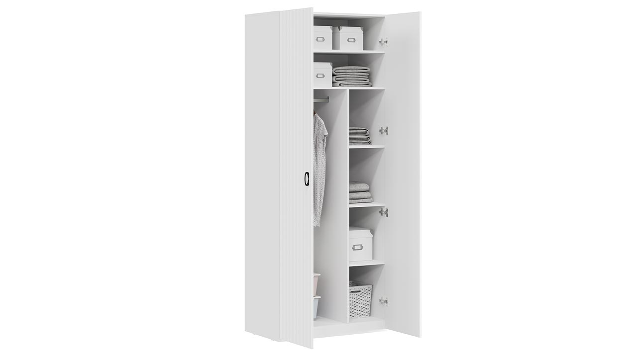 Шкаф для одежды Tiffany в отделке белый жемчуг и белый Soft. Нежные оттенки и мягкая текстура придают изделию утончённый и элегантный вид. Идеально подходит для создания уютной и стильной атмосферы в спальне или прихожей.