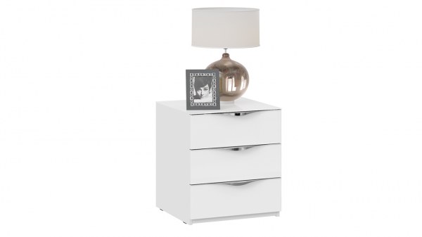 Тумба прикроватная с 3 ящиками «Глосс» - Белый глянец, Стекло