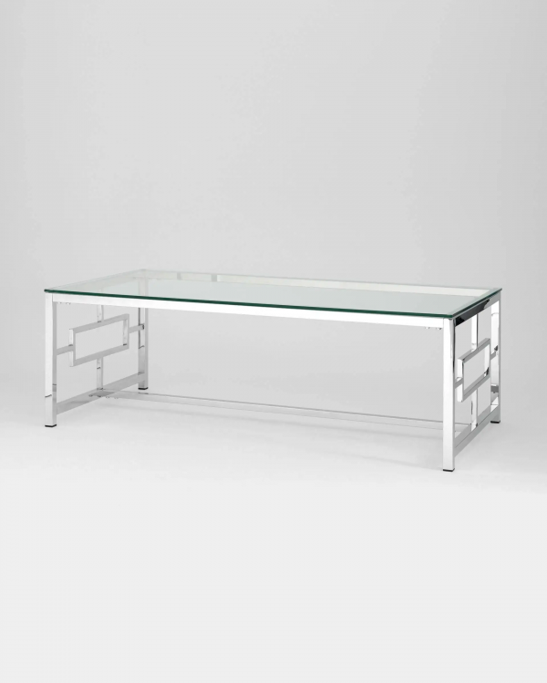 Журнальный стол 120*60 БРУКЛИН, прозрачное стекло, сталь серебро