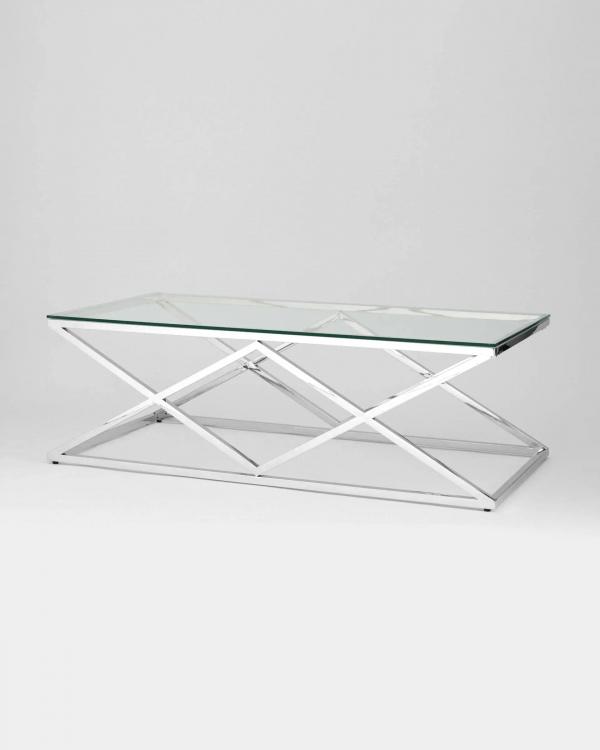 Журнальный стол 120*60 ИНСИГНИЯ, прозрачное стекло, сталь серебро