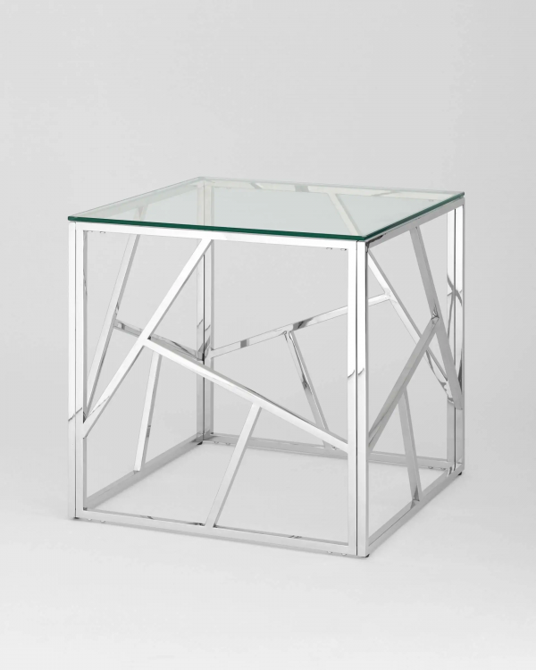 Журнальный столик 55*55 АРТ ДЕКО, прозрачное стекло, сталь серебро