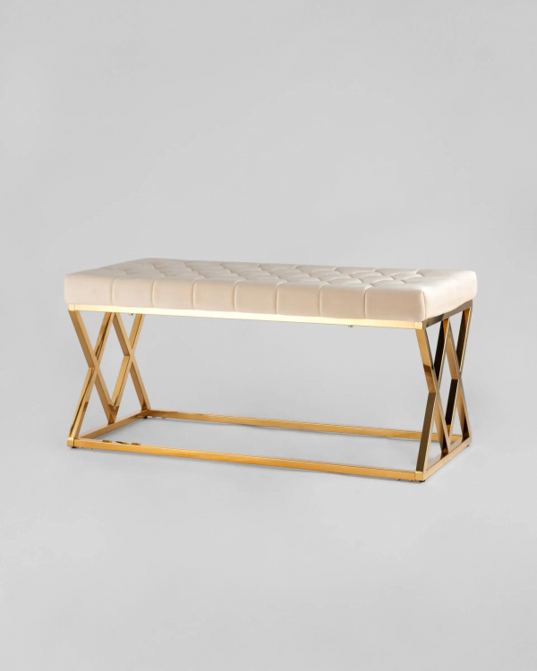 Банкетка-скамейка ИНСИГНИЯ, вельвет бежевый, сталь золото