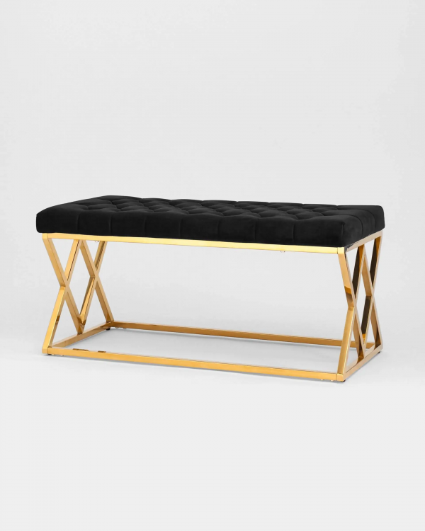 Банкетка-скамейка ИНСИГНИЯ, вельвет черный, сталь золото