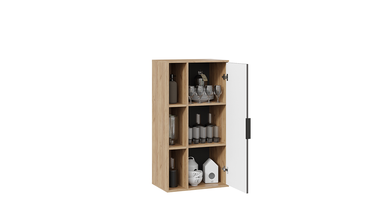 Навесная модель Hilton в эффектном дуэте дуба крафт и графита. Настенное размещение экономит площадь и создаёт ощущение лёгкости. За фасадами скроются необходимые предметы, сохраняя порядок в помещении. Матовая текстура графита подчёркивает теплоту древесного оттенка. Универсальное решение для гостиной, столовой или кабинета, где важны функциональность и современная эстетика.
