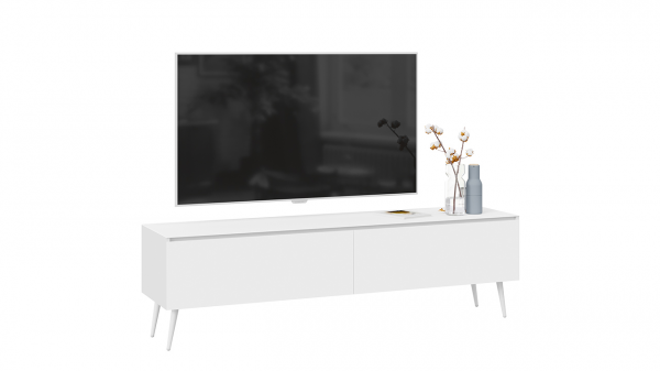 Тумба для теле- и радиоаппаратуры «Глосс» с опорами - длинная Белый глянец, Стекло Белый глянец, Белый
