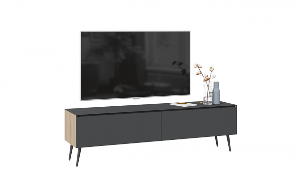 Тумба для теле- и радиоаппаратуры «Глосс» с опорами - длинная Яблоня Беллуно, Cтекло Графит матовый, Серый