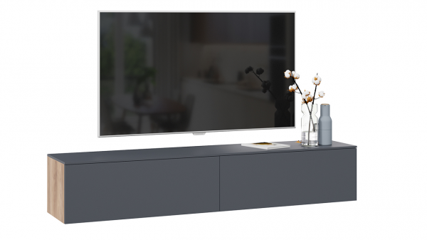 Тумба для теле- и радиоаппаратуры «Порто» - длинная Яблоня Беллуно, Графит софт